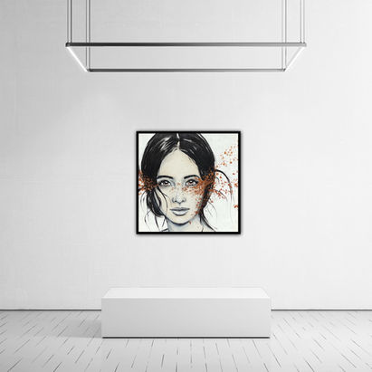 Acryl und Kohle auf Leinwand - gerahmt mit schwarzem Schattenfugenrahmen
